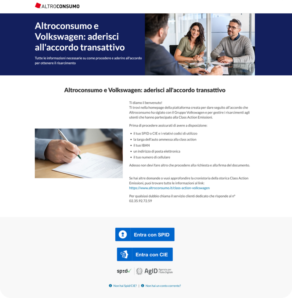 | Gestire l’adesione di decine di migliaia di consumatori alla class action promossa da Altroconsumo nell’accordo con il Gruppo Volkswagen |